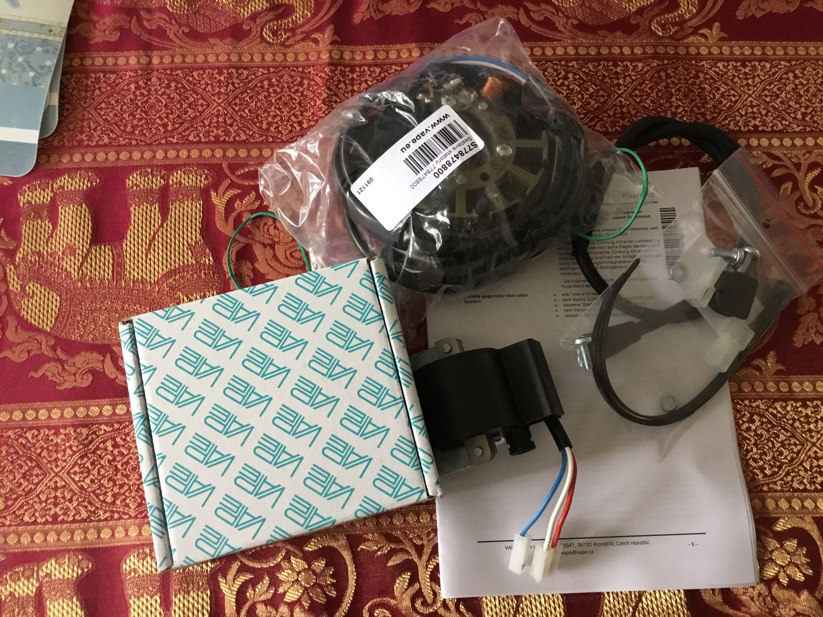 Nun, der Grund dafür war meine längeren Überlegungen, wegen der Betriebssicherheit. Ich habe zwar einen kompletten Satz Zündung da, aber irgendwie bin ich in Sachen Zuverlässigkeit nicht überzeugt. Und ehe ich irgendwo im brandenburgischem Nichts stehen bleibe, ist das Geld wohl gut angelegt.