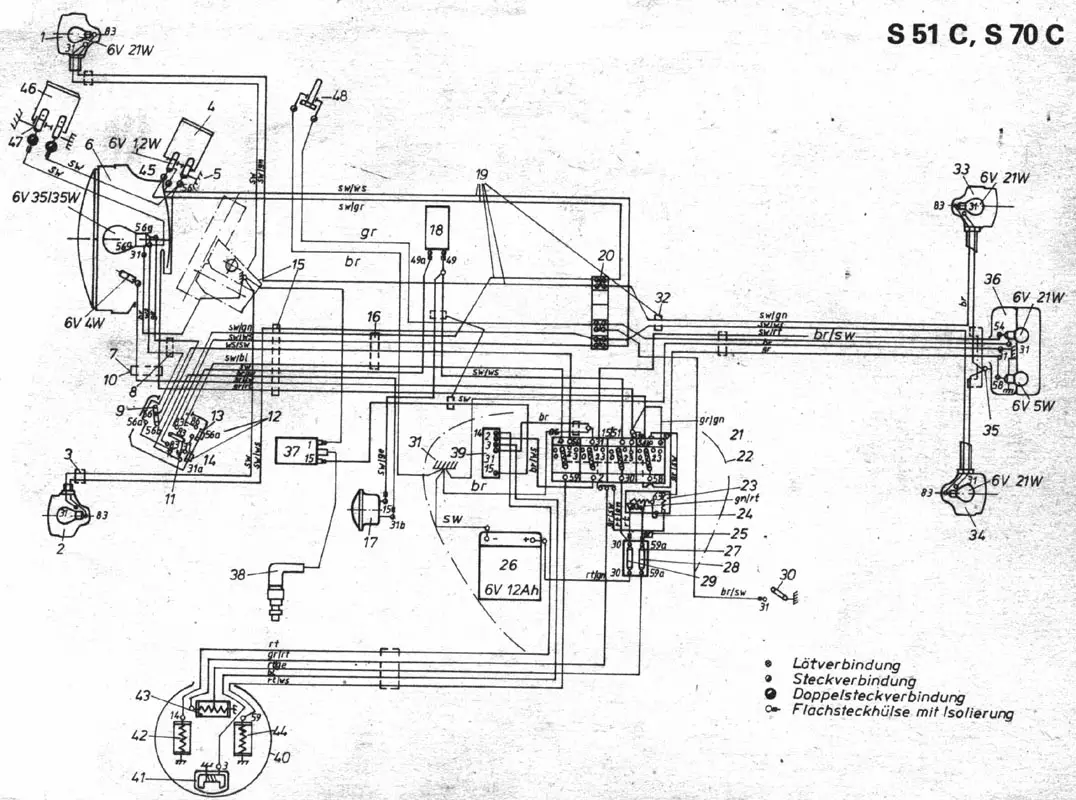 achte darauf, dass du bei 6V Bordelektrik die Masse von der 12V Batterie extra und nicht über den Rahmen ziehst, sonst machst du dir die 6V Batterie kaputt
