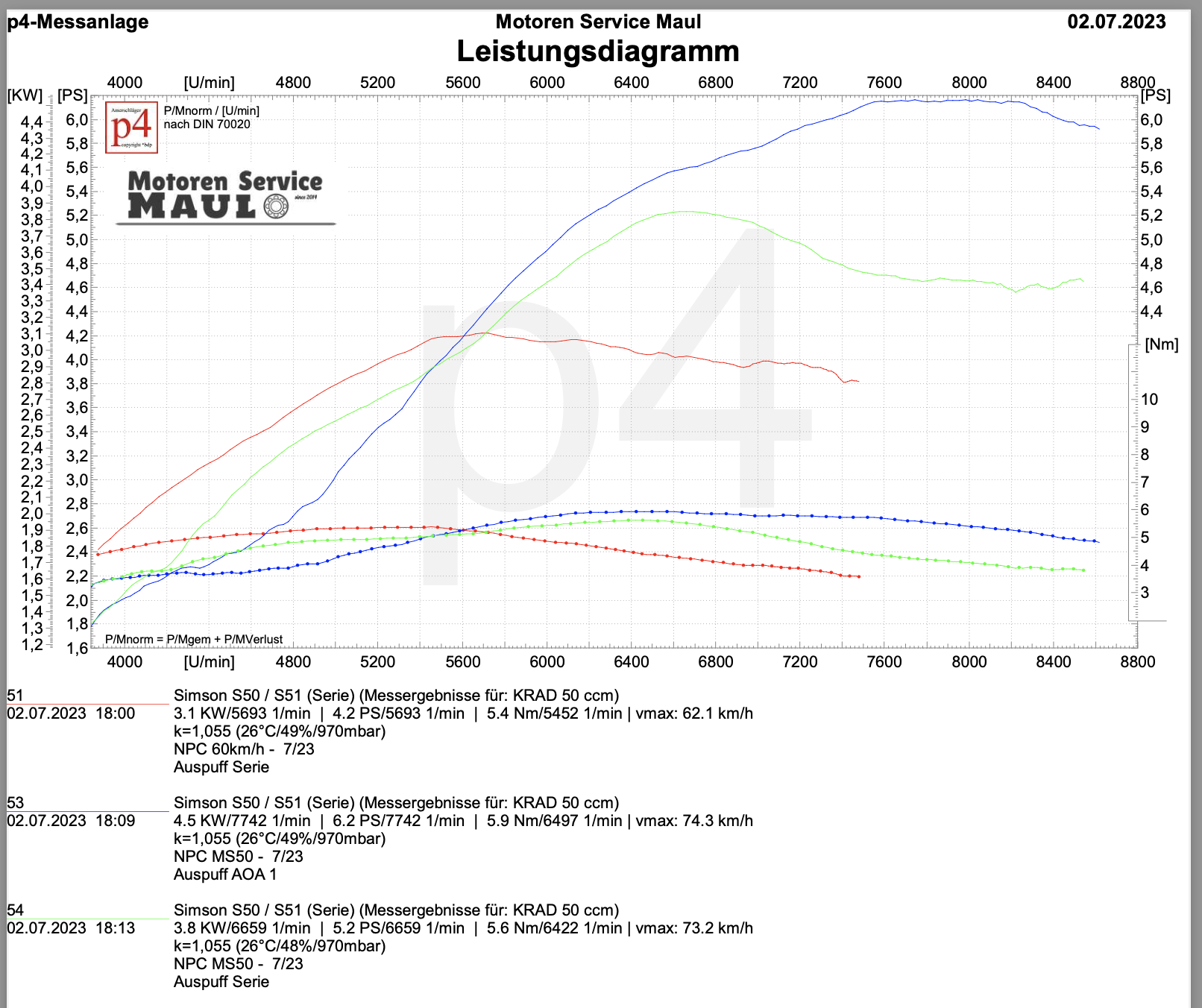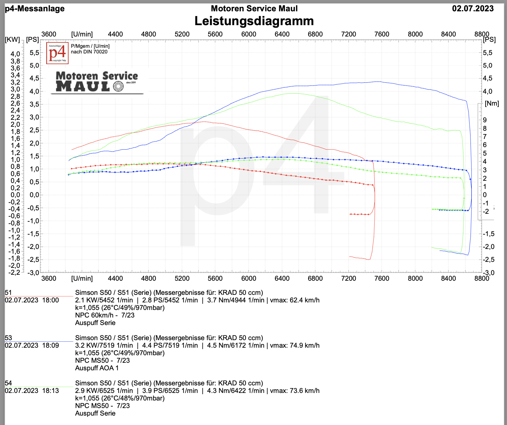 Hier mal noch ein Nachtrag im vergleich zum MS50 NPC. Bitte beachten der MS50 NPC ist zum Zeitpunkt der Messung ca. 50km gefahren. Es ist also zu erwarten das hier genauso wie bei der 60km/h Variante noch schleichend Leistung kommt.
