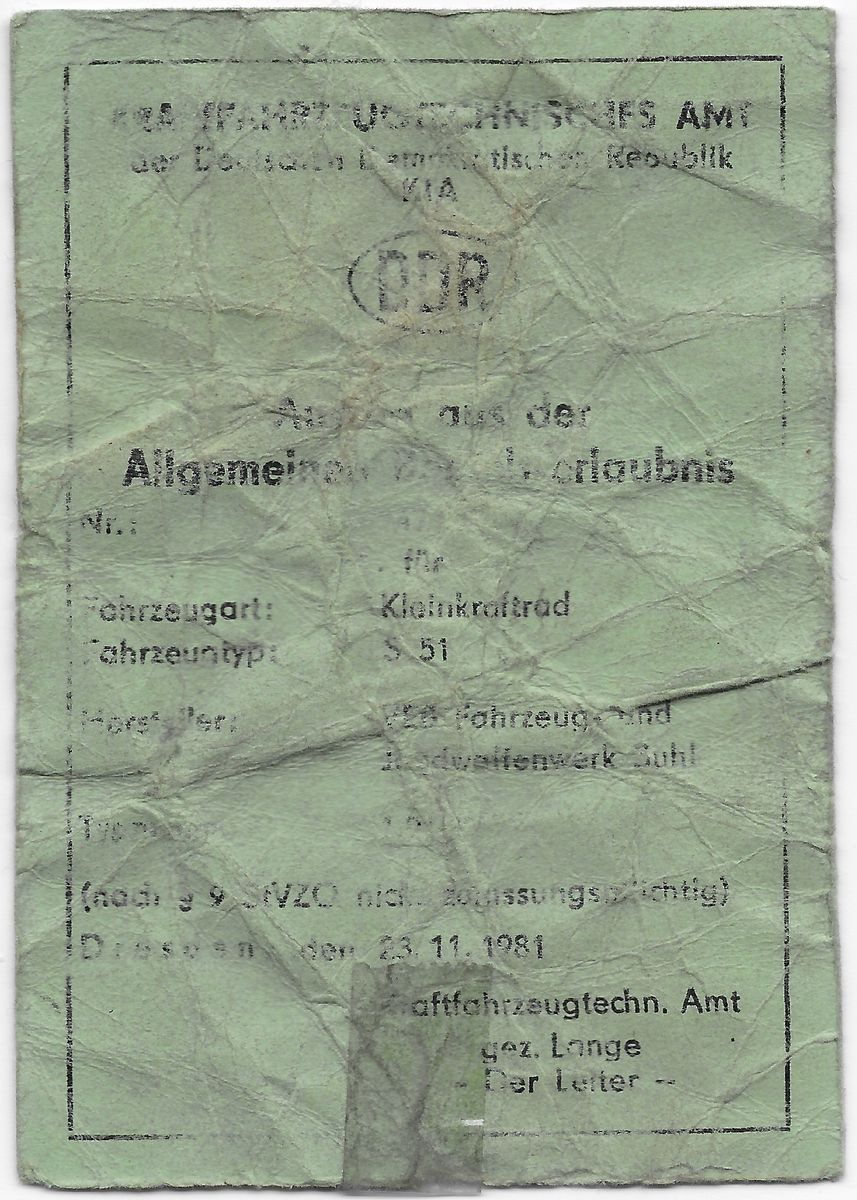 ich habe mir eine S51N mit Papieren aus '81 gekauft. Dachte ich zumindest.