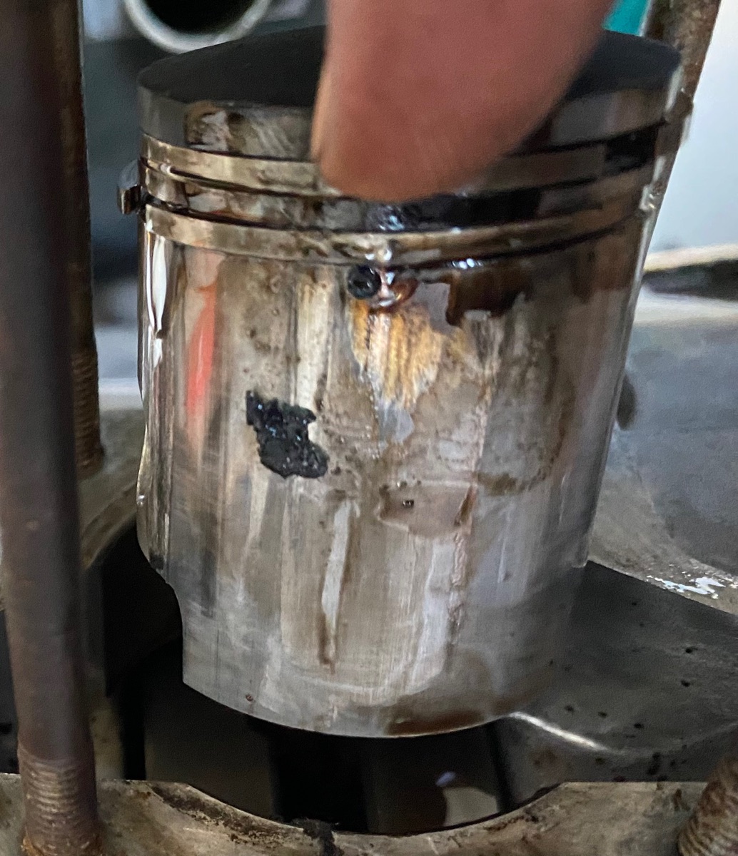 Ein anderes Öl würde ich auch nehmen. Ringnuten sind schwarz, der Ölstreifen unter dem 2 Ring ging vermutlich einmal Rings um den Kolben rum.