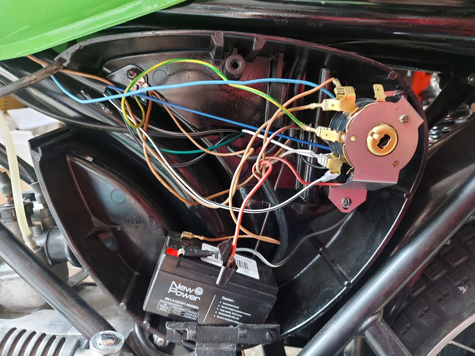 Ab Motor ist noch original verlegt und der andere Kabelbaum ist neu verlegt aber mit anderen Farben.. Im Schalter fehlt in weißes Kabel, das Abblendlicht und Standlicht gehen aber nicht.