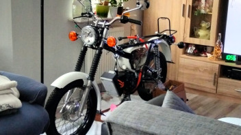 Sieht aus, als könnte man den Motor der Form nach in nen SR50 quetschen. Ich weiß, der Mu***iföhn fordert vom Fahrer schon mit Verbrenner ordentlich Selbstbewusstsein.