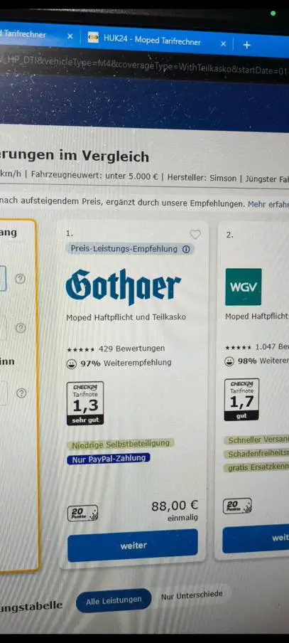 Schön wärs. Ohne Teilkasko 80€, inkl. Teilkasko 140€