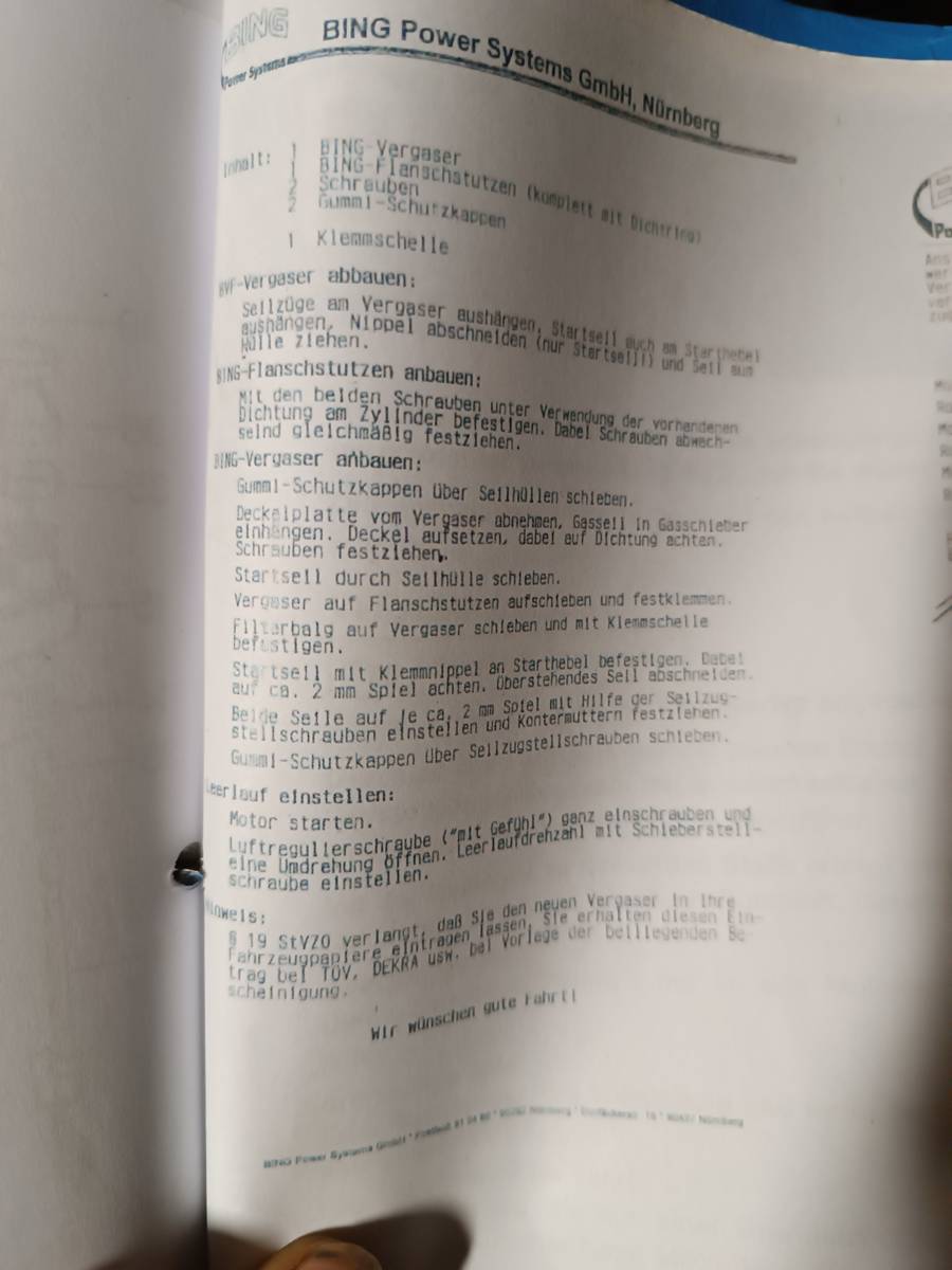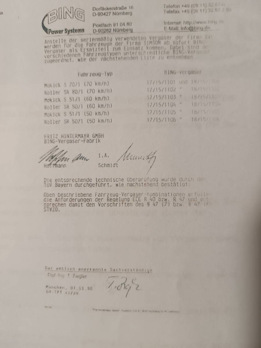 ich habe letztens meine S51 auf den 60km/h bing vergaser umgebaut. Natürlich mit Abe für die S51. Nun die Frage, ich habe beim TÜV angerufen und mir wurde gesagt das sie den Vergaser nicht in diese Papiere eintragen können (De einfache Karte die nur vorne und hinten bedruckt ist). Nun die Frage, soll ich mir einen anderen TÜV (prüfer) suchen oder es einfach dabei lassen, und die ABE immer mit nehmen, und bei der nächsten kontrolle es einfach genauso erklären und die ABE zeigen?