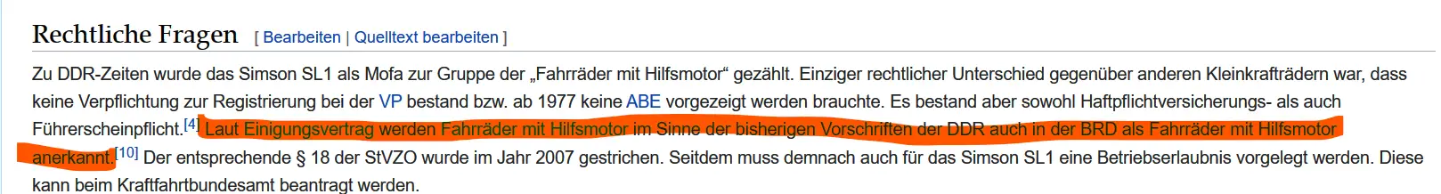 Moped bis 45 kmh - nein, weil fahrrad mit Hilfsmotor