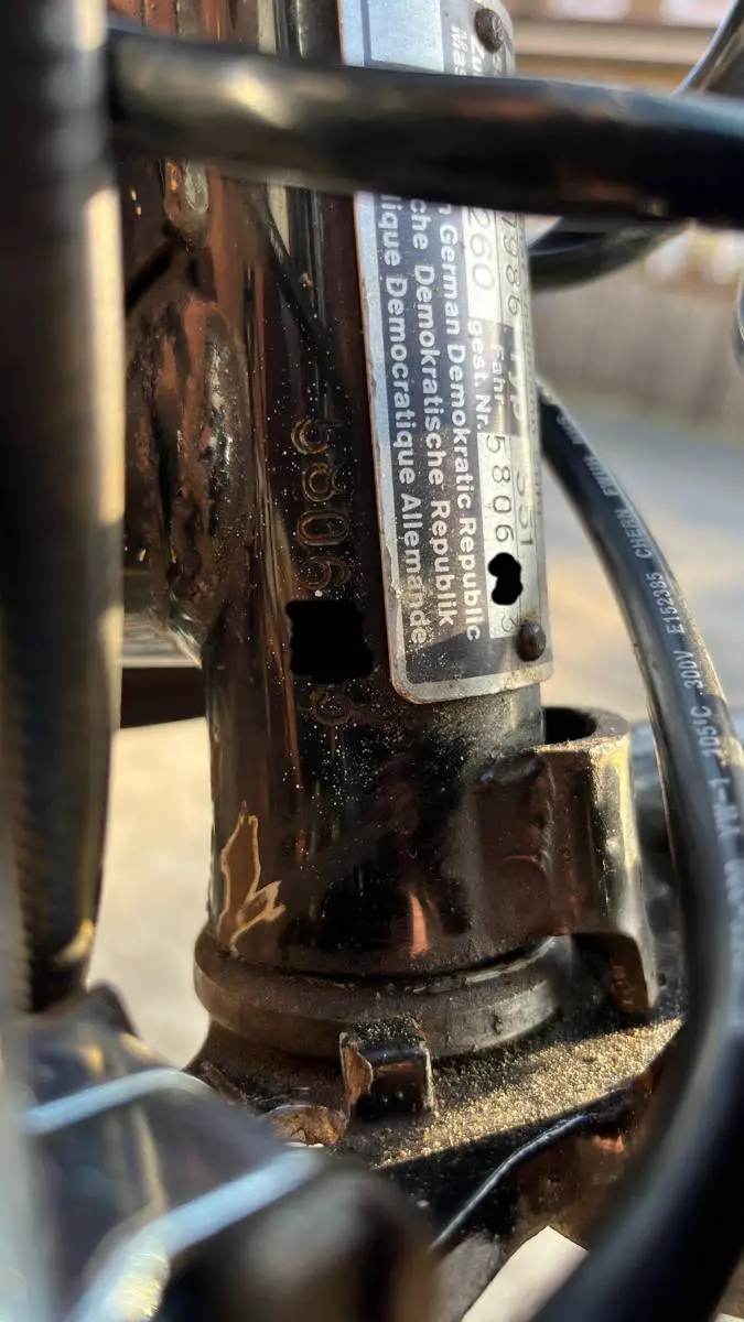 Hier sind mal die Bilder von Rahmennummer und Typenschild. Soweit ich weiß sind die original. Die verdeckten nummern sind Parallel und nur einige "tanzen aus der Reihe":