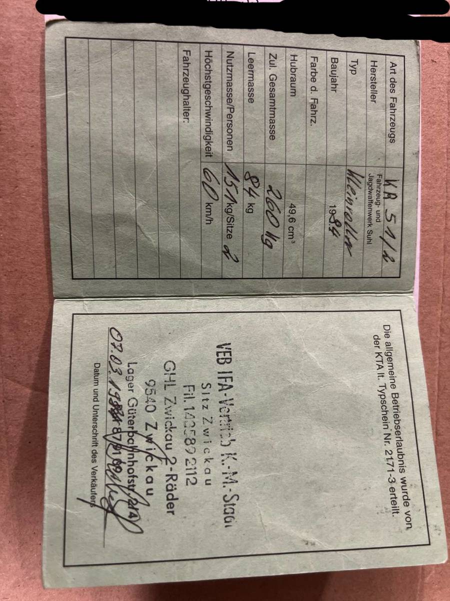 Aber die Papiere scheinen mir zu neu und die KTA Nummer stimmt nicht.