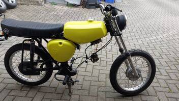 Mittlerweile hab ich die Rahmenteile gereinigt und einiges aufgearbeitet. Neue Schwinge und sehr gute DDR Federbeine sind montiert. Die Sitzbank habe ich mit Rep-Blech instandgesetzt und frisch bezogen. Gepäckträger und Rückleuchten sind ebenfalls aufgearbeitet und schon angeschlossen. Einen guten Satz Kompletträder habe ich günstig aufgetan sowie die silber gesprühten Bremstrommeln wieder original aufgearbeitet. Heute habe ich dann den gestückelten Multifunktionsschalterkabelbaum durch einen neuen ersetzt.