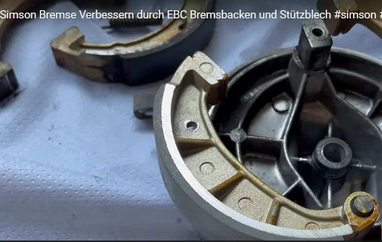 in den Berichten bei Ostoase taucht immer wieder mal auf, dass Bremsbacken von ECB gebrochen sind. Ich habe die Vermutung, es könnte daran liegen, dass die Beläge länger als sonst so üblich sind und über die ganze Länge der Bremsbacke gehen - siehe Screenshot von Youtube (im Hintergrund sieht man die kurzen Beläge von einem anderen Hersteller). Ich vermute, dass wenn der Belag zuerst in der Nähe vom Drehpunkt zum Aufliegen kommt, dass dann die Hebelverhältnisse und die damit einhergehenden Kräfte zu krass sind und dies zum Bruch führt. Die Beläge aus der DDR und bei allen anderen modernen Anbietern sind kürzer und gehen nicht bis in diesen kritischen Bereich.