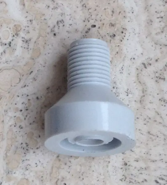 • Wenn du das Plaste wo die Welle draufgeschraubt wird in den Deckel gesteckt hast, kommt der Stift von außen durch das Loch im Deckel und sichert dieses Plasteteil