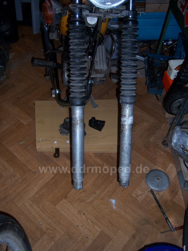 So hab die Telegabel Überholt. Neue verstärkte Federn rein. (die Alten stehen zum Verkauf!) neues Öl, neue Simmerringe und wieder zusammen, federt!