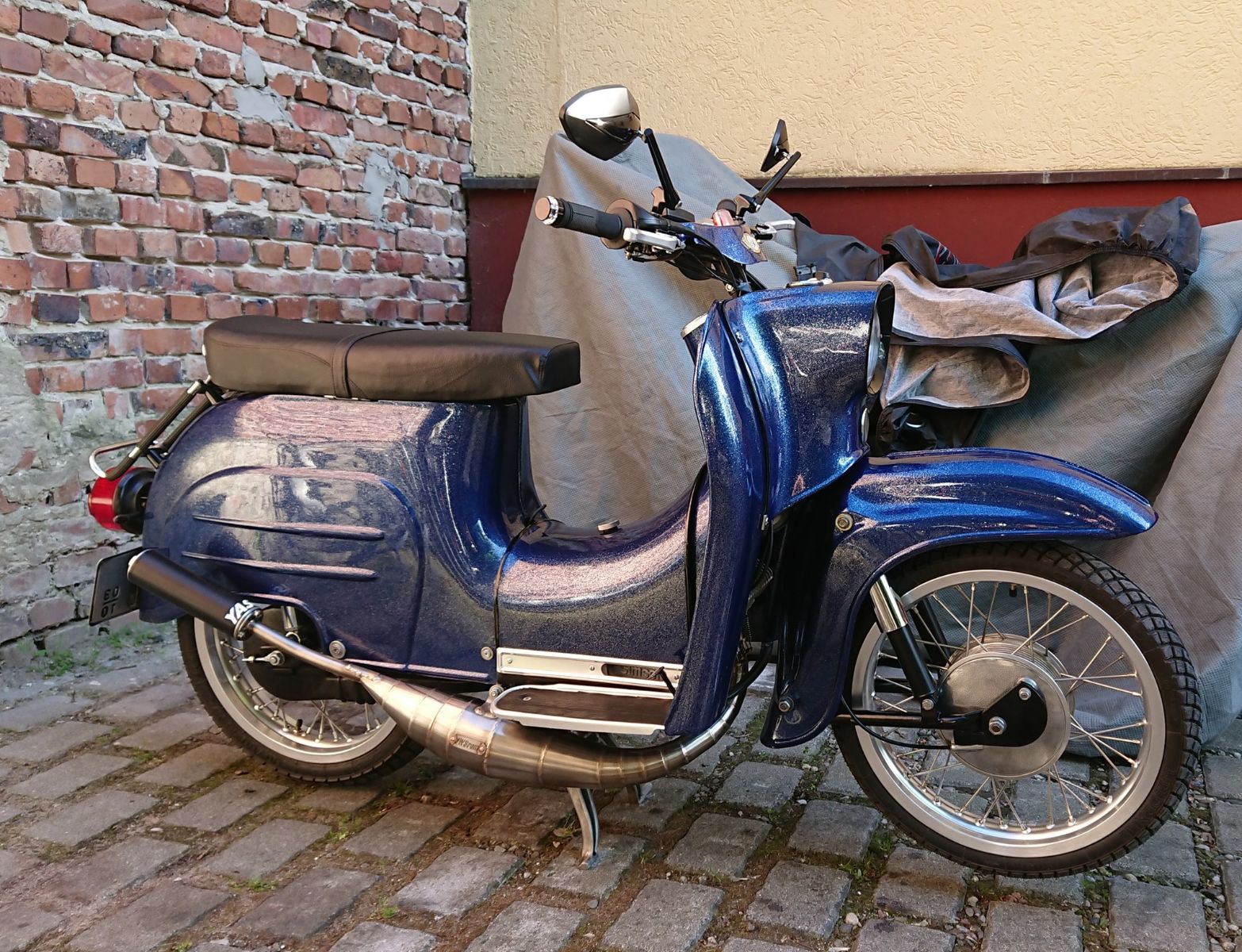 Genau. Angeschlossen ist diese am Unterdruckanschluss des 28er Flachschieber Vergasers.