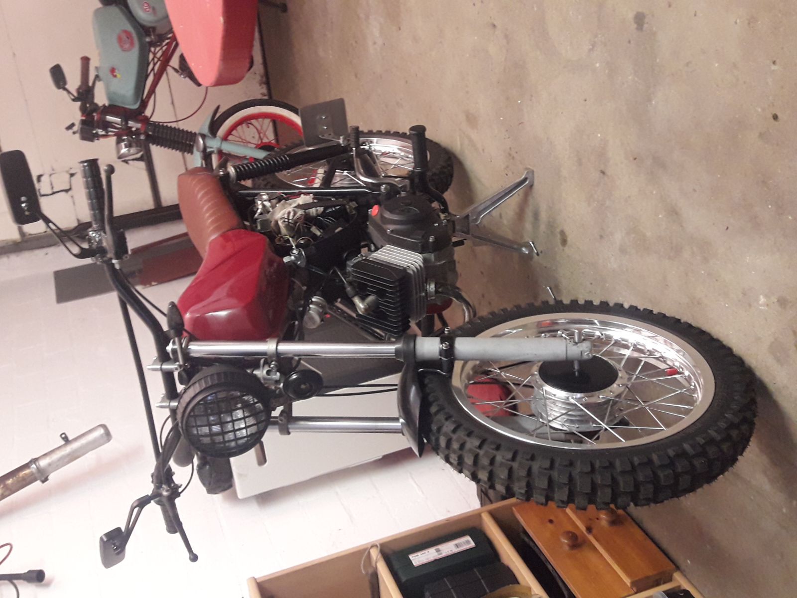 Nachdem ich das Teil nun endlich in die endgültige Montageposition angepasst habe, kam die Lackierung. Neulich schrieb ich ja, dass ich mir noch nicht ganz entscheidenden könnte welche Art der Lackierung für mich die besserer, aber auch die kostengünstigste ist, habe ich mich für die Büchsenvariante entschieden. Entsprechende Vorbereitungen für den Garnauftrag getätigt, versteht sich. Nach ner guten Woche, dann die Endmontage ans Moped. Da das Beinschild oben an der Tankaussparung nicht ganz passte, warum auch immer - es sollte ja nach Originalmassen gefertigt sein - kam das Teil nun ran. Sicher ist es dem Originalen Blechbeinschild nicht ebenbürtig, wegen der Steifigkeit, so wird es seinen Dienst tun. Die Außenkanten habe ich mit gleichfarbigen Kantenkeder verkleidet. Denke, dass der Keder ein wenig zum Schutz der Kanten sorgen wird. Man weis ja nie wo man mal aneckt.