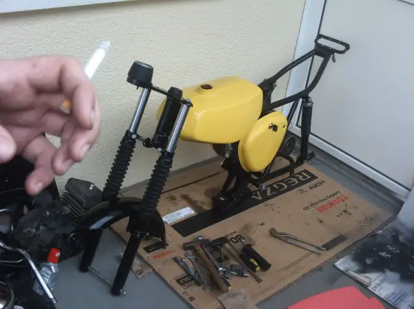 muss wohl erstmal die Arbeiten still legen da ich mir ne fette Grippe eingefangen habe mit Fiber und all den scheiß was dazugehört hoffe aber das ich bald wieder fit bin denn Rahmen wäre abholbereit und felgen sind auch gestrahlt könnten dann auch lackiert werden. Nur muss ich erstmal neue Farbe holen die es bei uns ja nicht gibt.