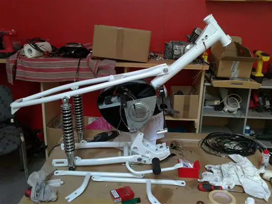 Erstmal ne erleuterung des Projektes. Schrottreife S51 B1-4 neu aufbauen von grund auf. Erstmal wurde alles zerlegt und Rahmen in Weiß Gepulvert soll mal später Weiß - Rot werden. Kommen wird ne 12V Vape, Edelstahlfelgen 2.75er , 60ccm 2 Kanal , 32mm Krümmer , Lampenmaske , Minni Blinker , komplett neue Schrauben - Buchsen und Lager , 5fach Verstellbare Federbeine u.s.w