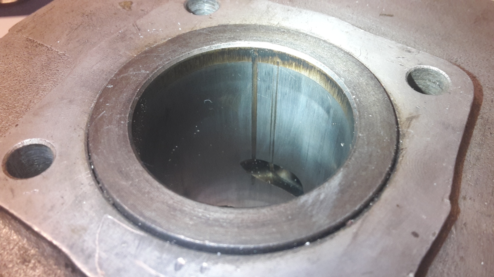 Über Ebay konnte ich einen Zylinder im 0-Maß ergattern. Ich war mir aber nicht ganz sicher, ob es sich um einen DDR-Fabrikat handelte. Die Prägungen deuten darauf hin. Günstig war er auch, da es an der Überströmeröffnung zwei Rillen gibt. Kann mir einer sagen was da passiert ist und ob das beim Schleifen beseitigt werden kann?