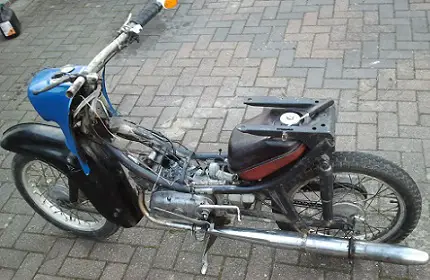Für 400€ hatte ich sie erstanden, 4 Gang Fußschaltung, der Vorbesitzer hatte noch einen Drei-Gang-Handschaltung Motor dazugegeben, wo jedoch noch die Zündung angebaut war.