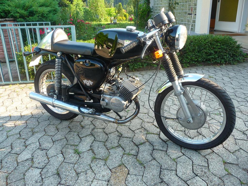 Bekommen hat sie eine Motorregeneration, einen Büffeltank, Federbeine, Federgabelregeneration, Stummellenker, neue Blinker und Rücklicht, und Krimskrams halt.