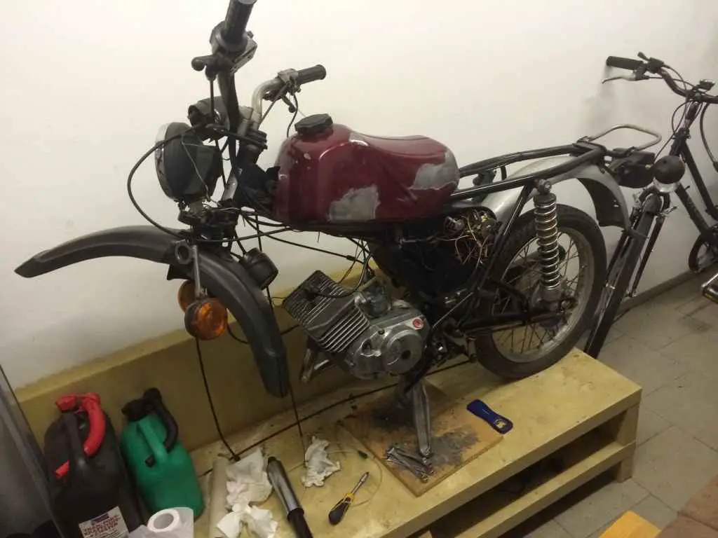 Habe aufgrund von Hobbyaufgabe eines Arbeitskollegen vor knapp drei Jahren 1 1/2 s51 erhalten, Oder besser gesagt nix halbes und nix ganzes eine Unfall geschädigte und ein Teilbeträger Zu dieser zeit baute ich gerade meine Zündapp GTS 50 5speed auf, und hatte mich nur so ab und an mal an die Teile der s51 gemacht, als ich auf Ersatzteile wartete.