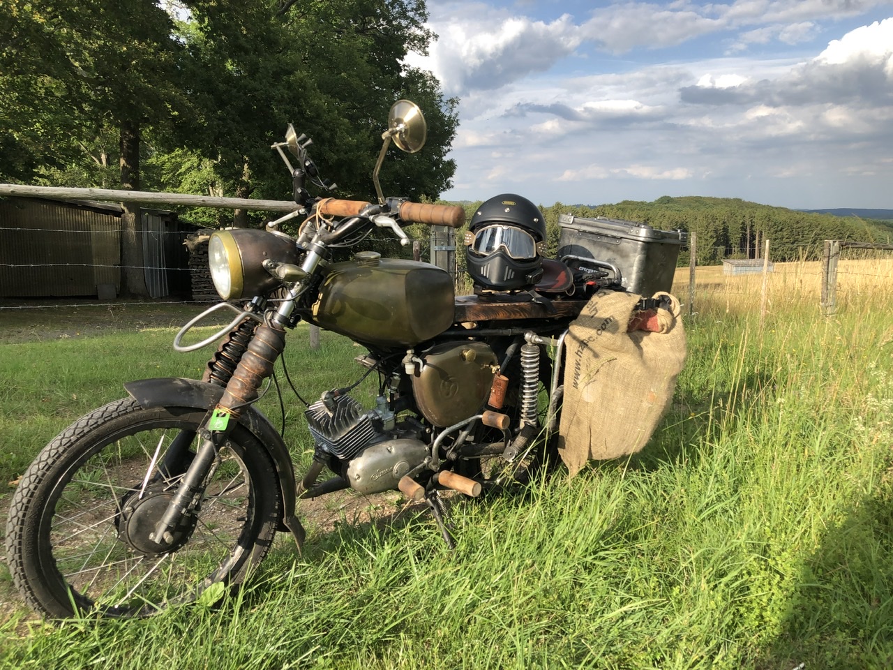 Ich fahre eine Simson S51 in S50 Optik. Die Simme hat nen 50ccm Motor mit Zylinder vom 82er Baujahr und DDR Kolben. Sie ist freiwillig zugelassen und hat ein Viersener Kennzeichen. Wer will kann ja mal meine Website besuchen.