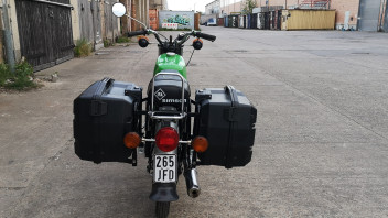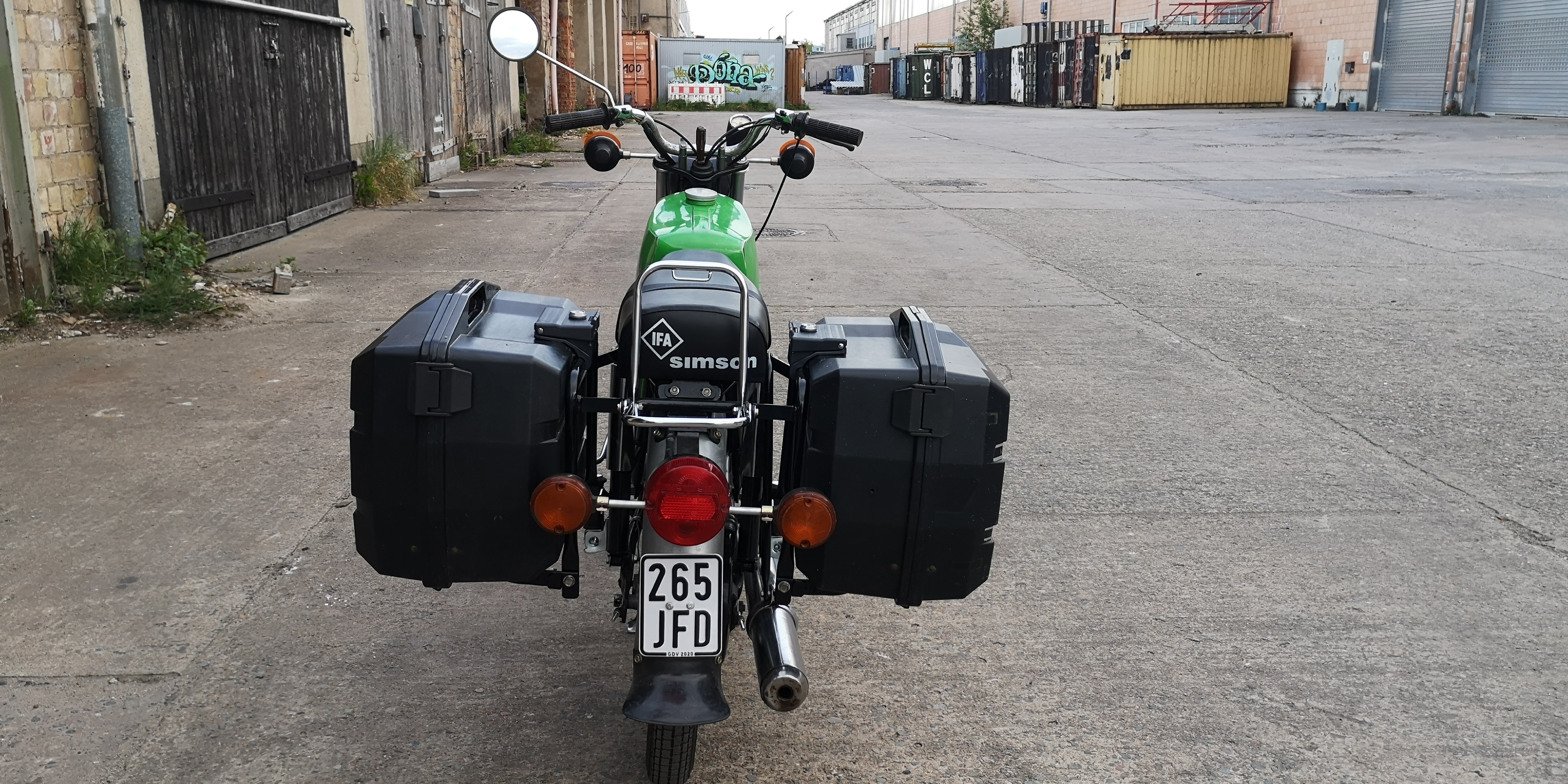 Heute habe ich der S50 dann noch zwei Seitengepäckträger und Pneumant Tour 32 Koffer angebaut.