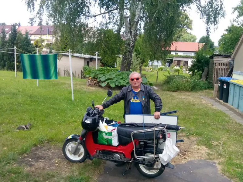 Bernd Raffelt, einer der ganz frühen Simsonauten wohnt in der Oberlausitz. Er hat mit seinem Simson Roller Australien umrundet, ist durch ganz Europa gerollt und auch in Amerika hat er einige tausend Kilometer unter die Räder genommen. Zu seinen Reisen hat er Bücher geschrieben, die er selbst verlegt. Eines seiner Bücher hab ich vor Jahren mal in die Finger bekommen. Seitdem hatte ich den Wunsch, den Mann mal kennen zu lernen.