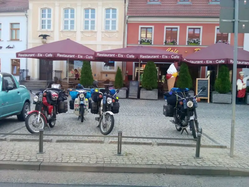 In Bad Muskau gehts über die Grenze zum tanken. Paul möchte noch einen Aufkleber für sein Knieschutzblech kaufen, wird aber leider nicht fündig. Egal, wir waren auch noch in Polen!
