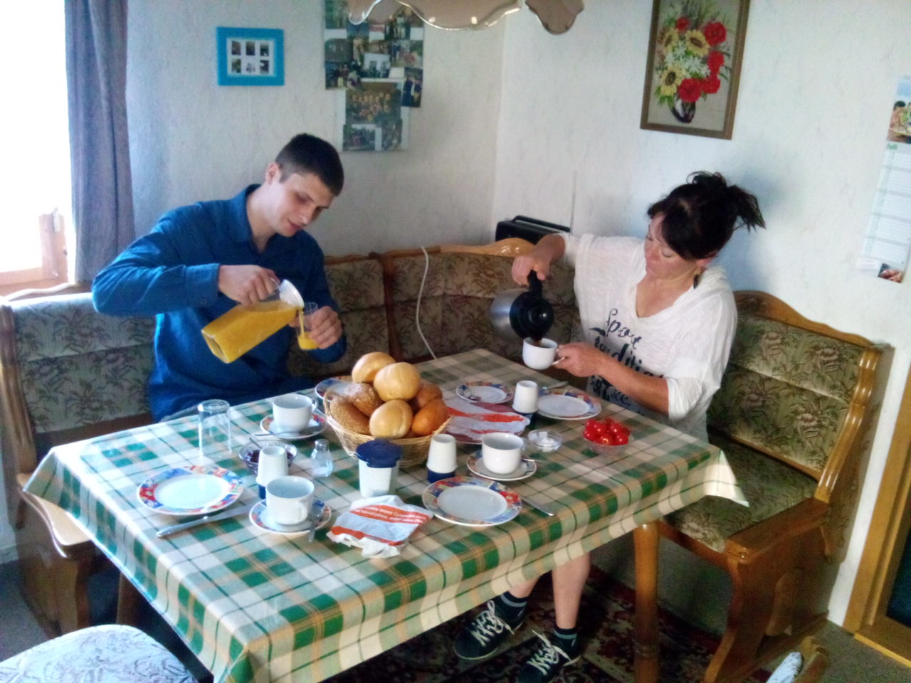 Der Wecker klingelt um halb sieben, um halb Acht steht das reichhaltige Frühstück auf dem Tisch. Wir lassen uns Zeit, schließlich ist es unser erster Urlaubstag. Die Zelte und Schlafsäcke haben wir gestern gleich auf den Moppeds gelassen. Das spart früh richtig viel Zeit.