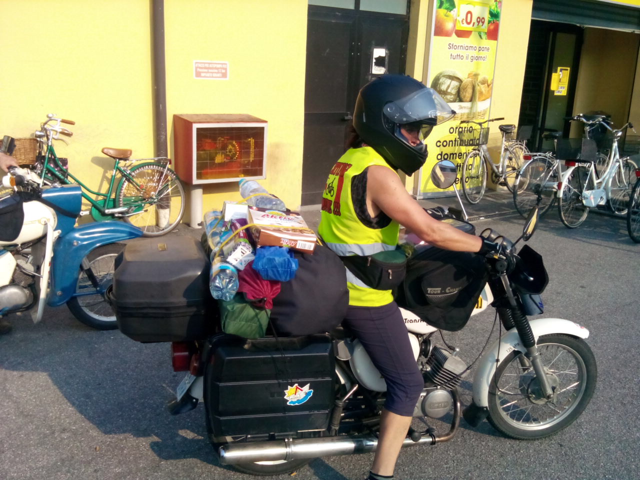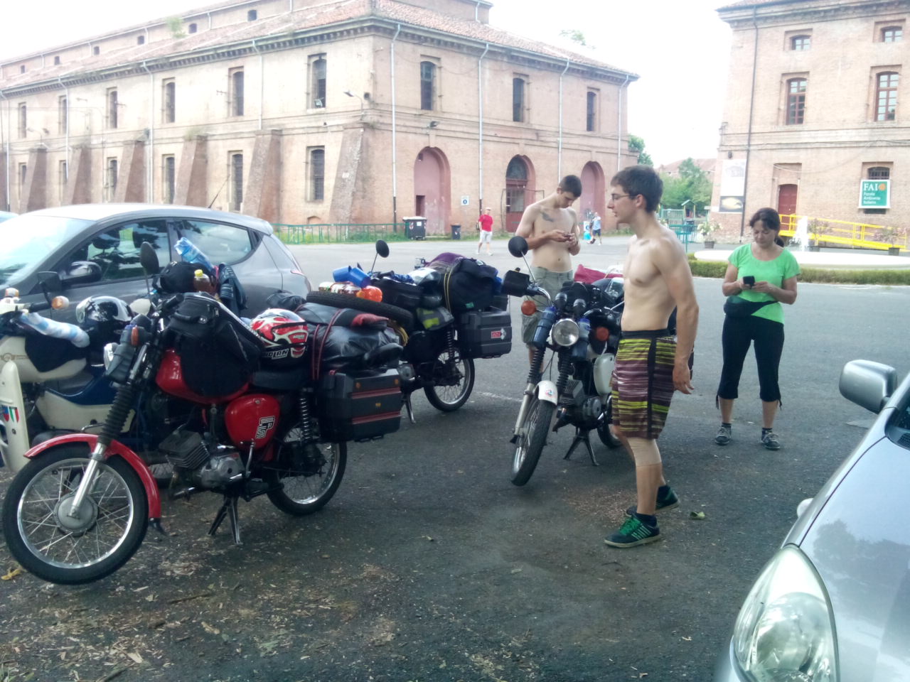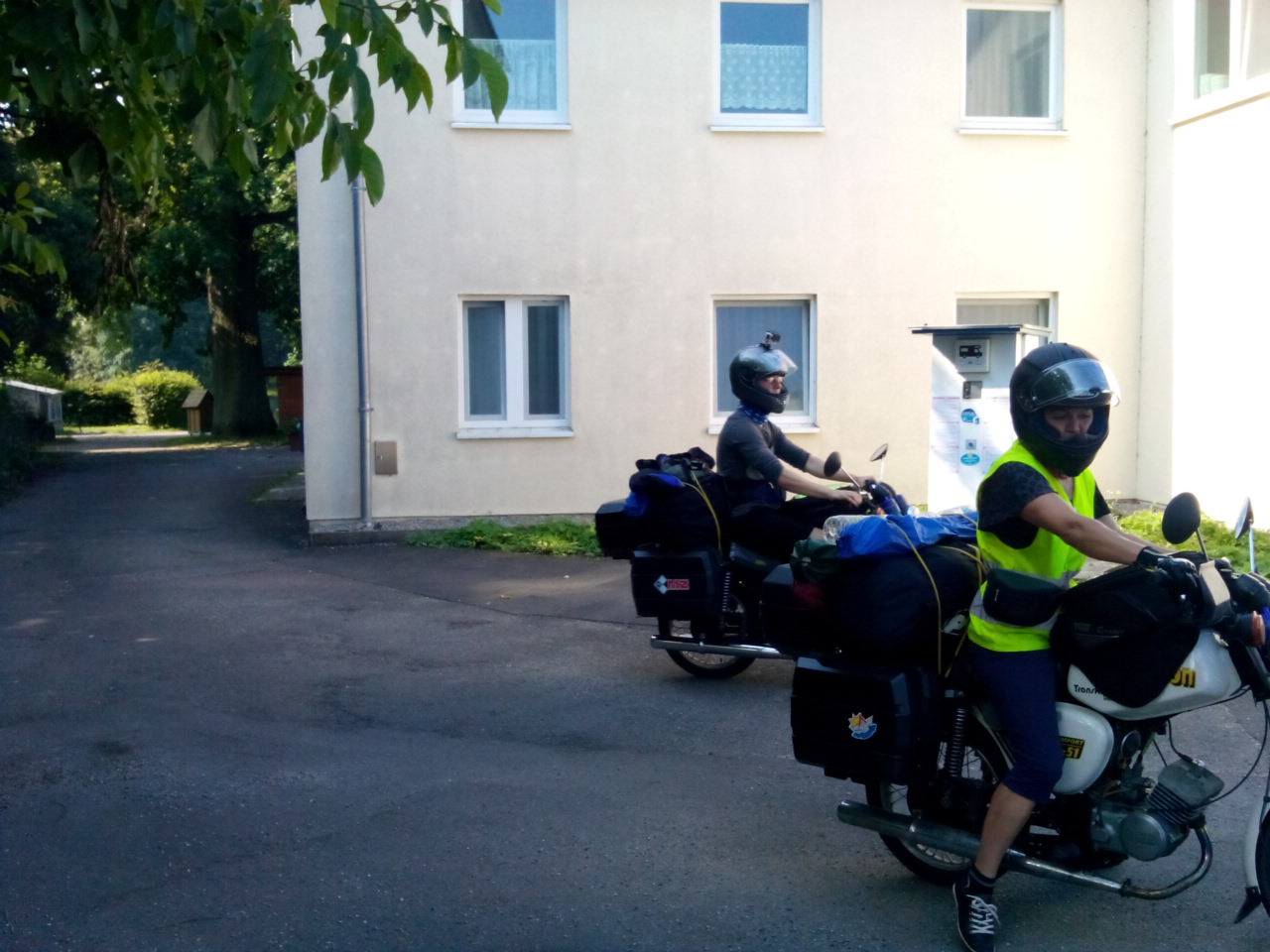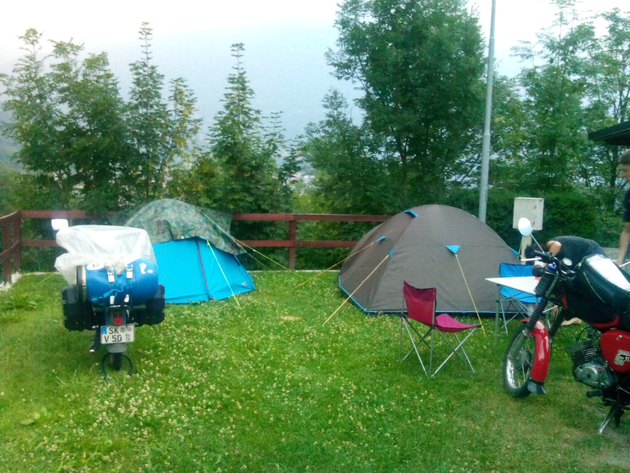Aufstehen um 8 Uhr, der Planet treibt uns aus den Zelten. Nach der Dusche geht s schon besser. Wir beeilen uns mit dem Abbau und dem Verstauen der Ausrüstung. Obwohl wir darin reichlich Routine haben dauert es seine Zeit. Halb Zehn sind wir wieder auf dem Weg. Frühstück gibt kurz vor Ulm bei einem Bäcker. In Ulm fahren wir zu Tante Louis und Onkel Polo um noch Kleinigkeiten zu kaufen. Die Teile für die GoPro bekommen wir aber erst im Mediamarkt. Ich versuche nochmal Bastis Blinker Problem zu lösen, was mir aber nicht gelingt. Die Batterie is platt - schlampige Vorbereitung würde ich sagen!