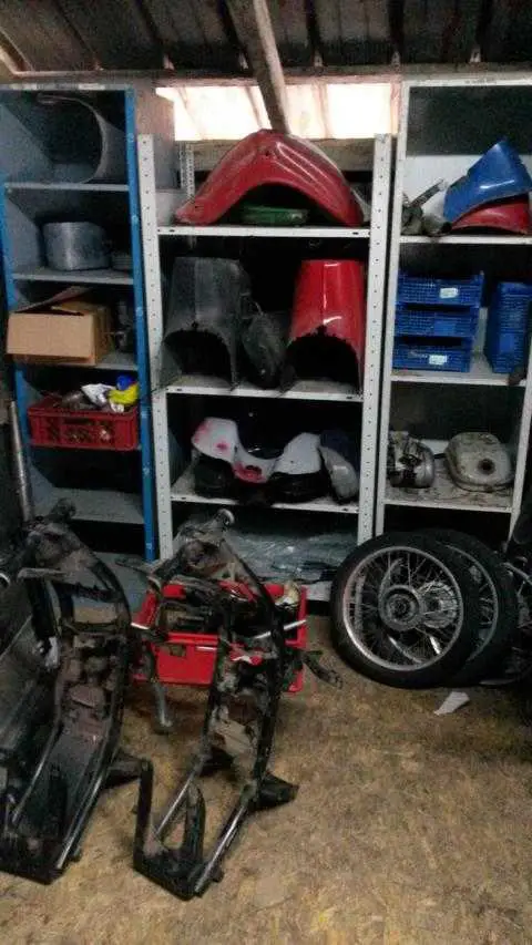 Alle Rahmenteile,Tank,Seitedeckel und der Motor sind gebraucht. Der Rest besteht aus neuen Teilen.