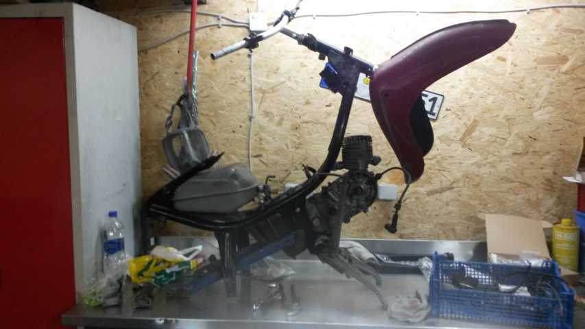 Alle Rahmenteile,Tank,Seitedeckel und der Motor sind gebraucht. Der Rest besteht aus neuen Teilen.