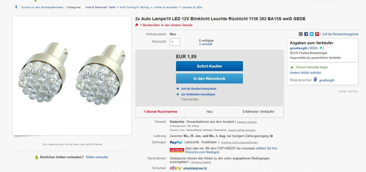 - Die für 6V sind teuer und seltener (bei 4 Leuchtmitteln in ca. 21W Stärke wäre man mit mindestens 25,60€ dabei)