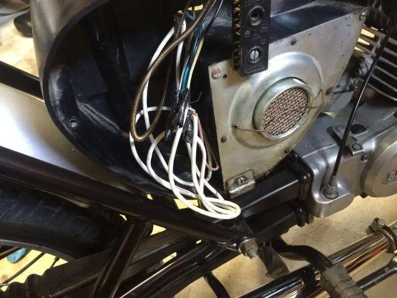 Einige Kabel sind mir dann nach ein paar Tagen aufgefallen, die mir einfach nicht passen wollten. Außerdem wollte die Blinkeranlage auch nicht richtig leuchten, da fielen mir die -0,X mm² Kabel auf... Sie stammen laut Aufdruck von einer Alarmanlage und sind eher Telefonkabel. Also neue Kabel verlegt und sauber verlötet und mit Schrumpfschläuchen isoliert.
