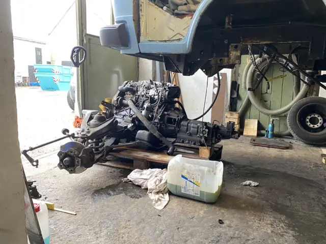 Zunächst muss dann erstmal bissl was an der Karosserie angepasst werden, vormals musste ja keine ladeluft Platz haben, und für die Servolenkung muss auch was angepasst werden.