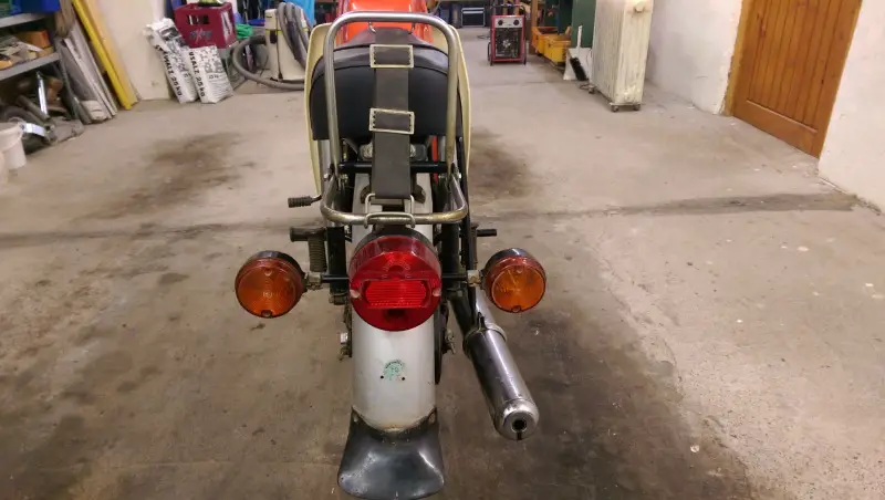 Das Beinschild habe ich schon angebaut ansonsten habe ich noch nichts verändert , der Kindersitz ist auch noch vom Vorbsitzer damit fuhr er seine Tochter noch in den Kindergarten.