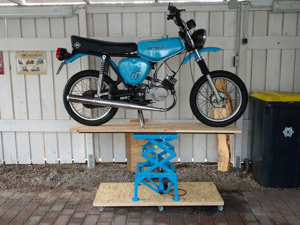 Das originale Kunststoffschutzblech ist jedenfalls hässlich und kommt nicht an das Moped.Bilder der Halterung. Und der Eigenbauhebebühne.