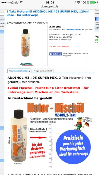 kleine Flaschen mit Mischöl gibt es doch überall in den Shops zu kaufen. Von daher nichts Neues.