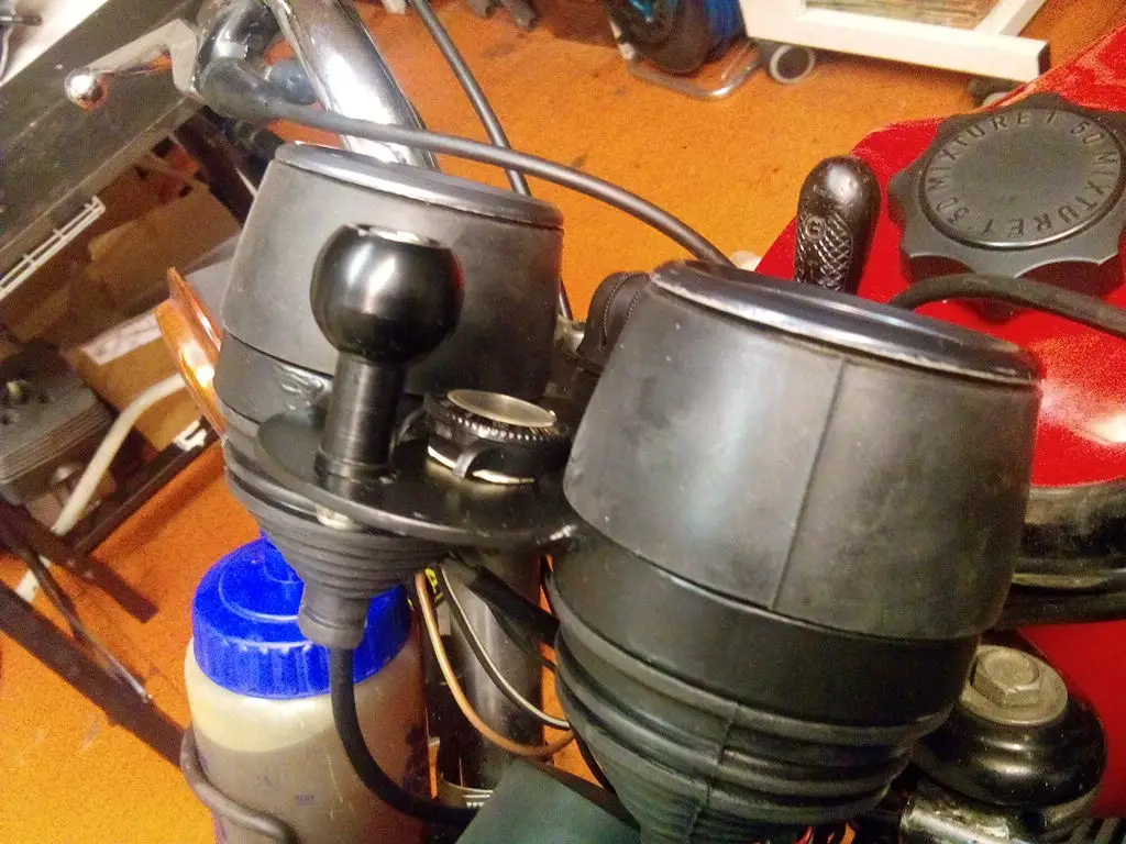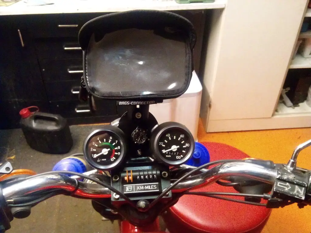 Vor unserer letzten Reisen hab ich das nicht mehr geschafft aber jetzt ist es fertig. Liegt schön im Blickfeld und nicht mehr im Tankrucksack. Platz für Schnickschnack is auch noch.