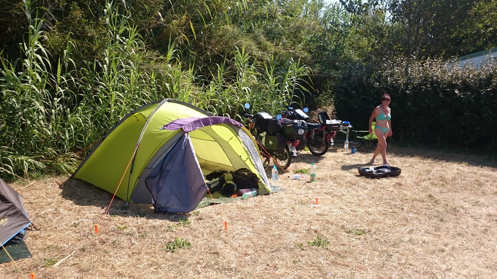 Der Zeltplatz am Plage du Limone ist voll, wir bekommen aber trotzdem einen Platz direkt vor dem Strand. Näher ran kommt man in Korsika wohl nirgends ans Meer.