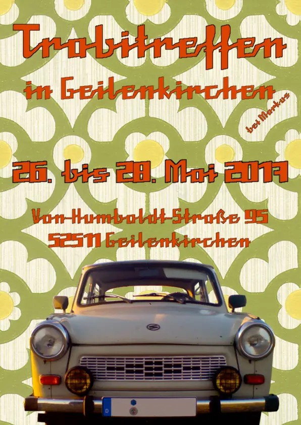 Liebe Community,auch in diesem Jahr findet wieder vom 26. bis 28.05.2017 das legendäre Trabant- und IFA-Treffen bei Markus Hack in Geilenkirchen statt.