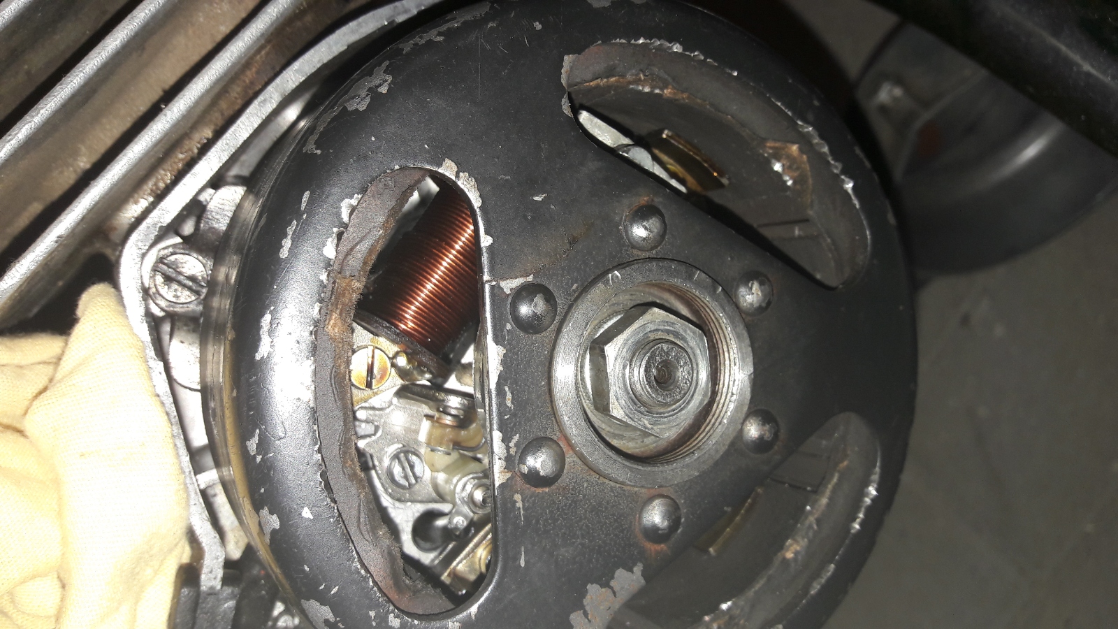 Kannst du außen auf dem Polrad irgendeine Bezeichnung erkennen oder ist das alles abgeschliffen?
