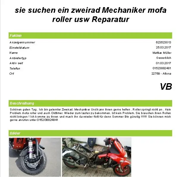 Inserat auf ebay-Kleinanzeigen: