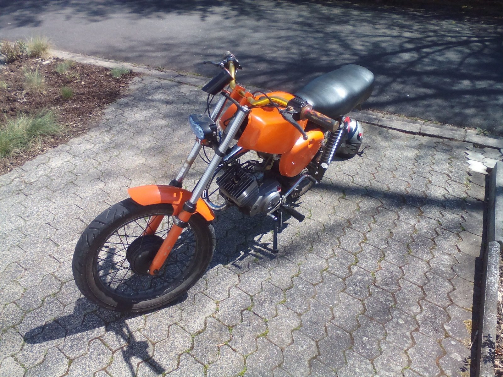 die eben genannten sachen sind alle rausgeflogen statt dem leo vince ist ein s51 enduroauspuff verbaut, das 17er ritzel wurde gegen ein 15er getauscht die miniblinker sind schon vor jahren an ein Moped eines Kumpels gewandert und das mini rücklicht wich einem einer s53 glaube ich.