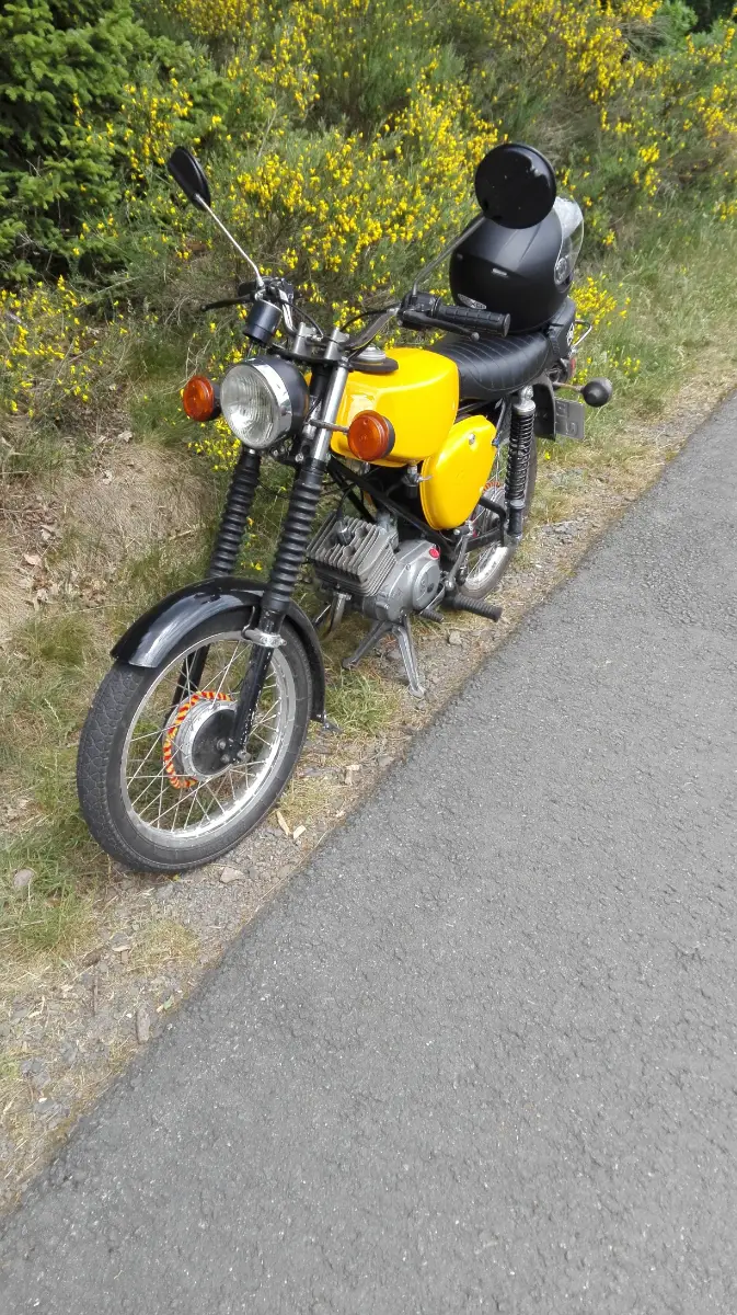 Im Winter wurde dann einiges gemacht, u.a. der Motor bei @TommyMaul, das Tankset und die Schutzis wurden von @Kädix gepulvert und vom @Simson-Peter hab ich die Buchsen bekommen. Den Rest, wie Vergaser, Auspuff, Sitzbank, Verkabelung, Bremsen, weitere Anbauteile, habe ich selbst wieder zu recht gefeilt oder ausgetauscht. Ein Originalzustand ist es nicht, da habe ich aber auch kein Wert drauf gelegt. Mir gefällt sie