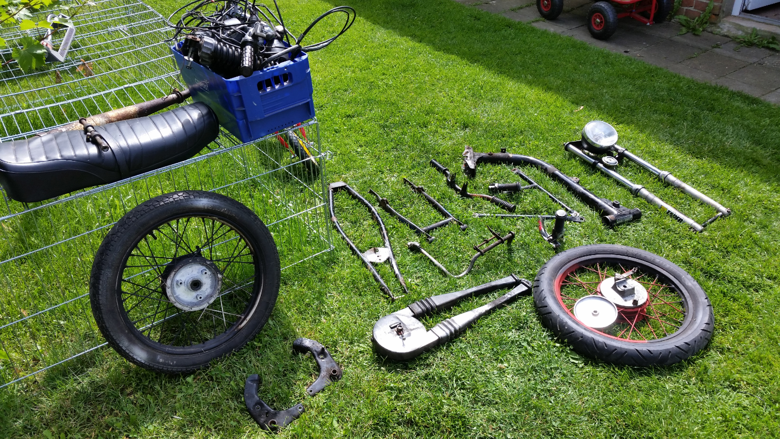Hallo ich heisse Dominic. Hier möchte ich gerne meinen Neuaufbau und Umbau auf 85ccm und die Legalisierung präsentieren. Gekauft habe ich sie in einem maroden Zustand für 200€. Tank, Seitendeckel und Sitzbank fehlten Motor fest der rest seht auf den Bildern.
