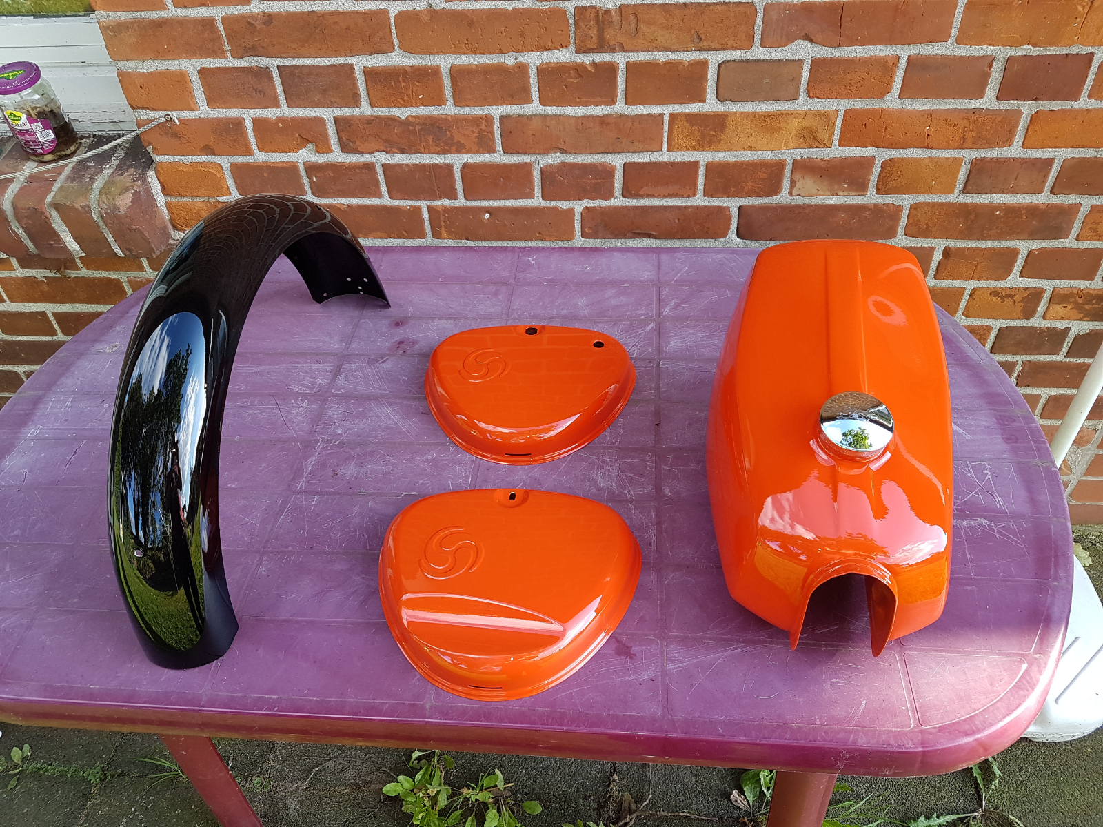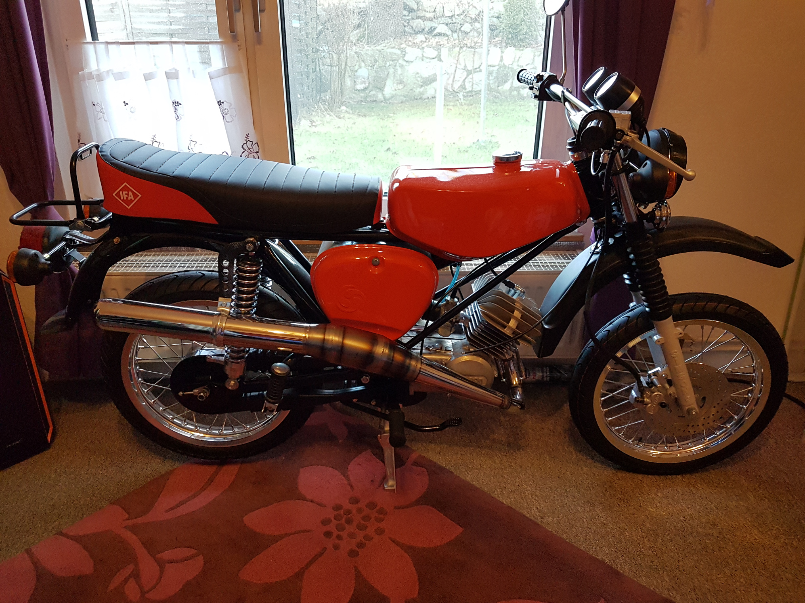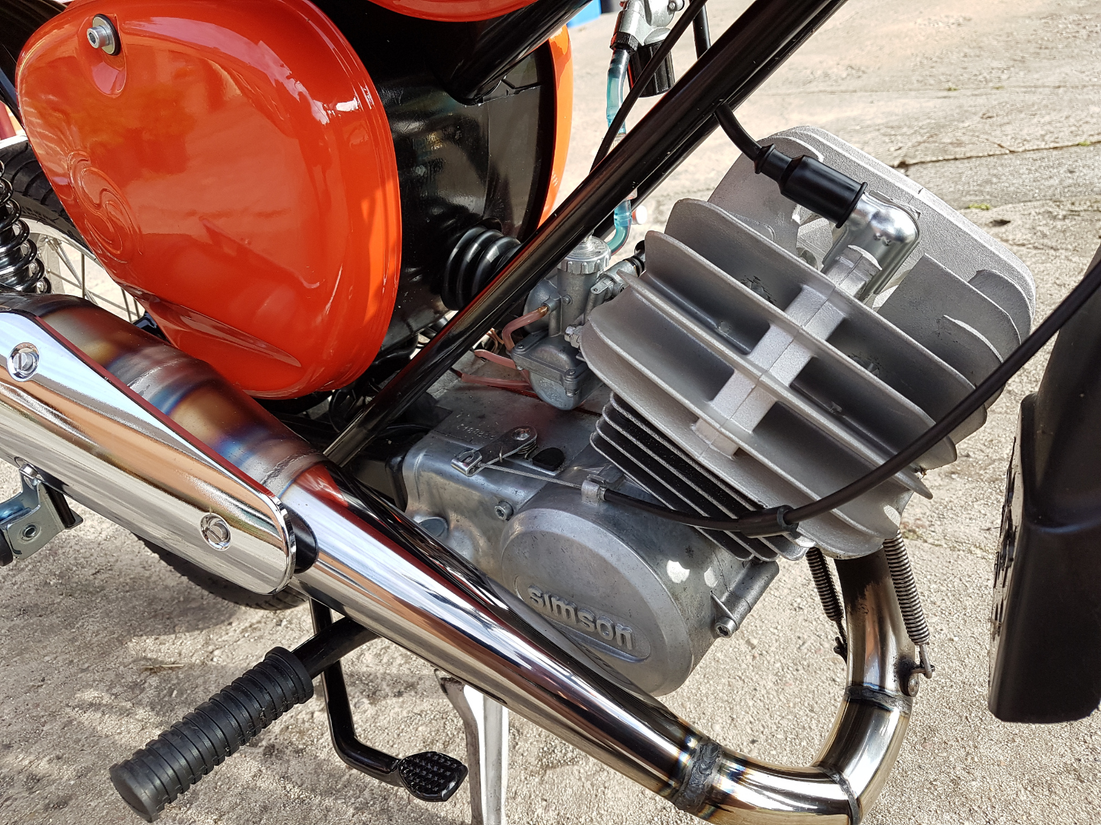 Das ist mein Setup. Alles in allem steckt sehr viel arbeit drin. Alles ist eingetragen und als Leichtkraftrad zugelassen. Was ich noch vor habe für nächstes Jahr von Langtuning die Klemmgabelbrücke mit Kegelrollenlager, und kastenschwinge. Selbstverständlich wird auch das eingetragen. Es stecken weit mehr als 5000€ in diesem Projekt und da ist keine Arbeitszeit mitgerechnet. Wie man sieht habe ich Spass am tunen aber Sicherheit und Legalisierung war mir ebenfalls wichtig. Und ich werde irgendwie nie fertig denn wenn ich was besseres sehe muss ich es ändern. Und alleine die Bremse und Fahrwerk sind ein Traum in der Simson. Bitte lasst mich am leben nur weil sie nicht Original geblieben ist. Und nun ein paar Bilder...