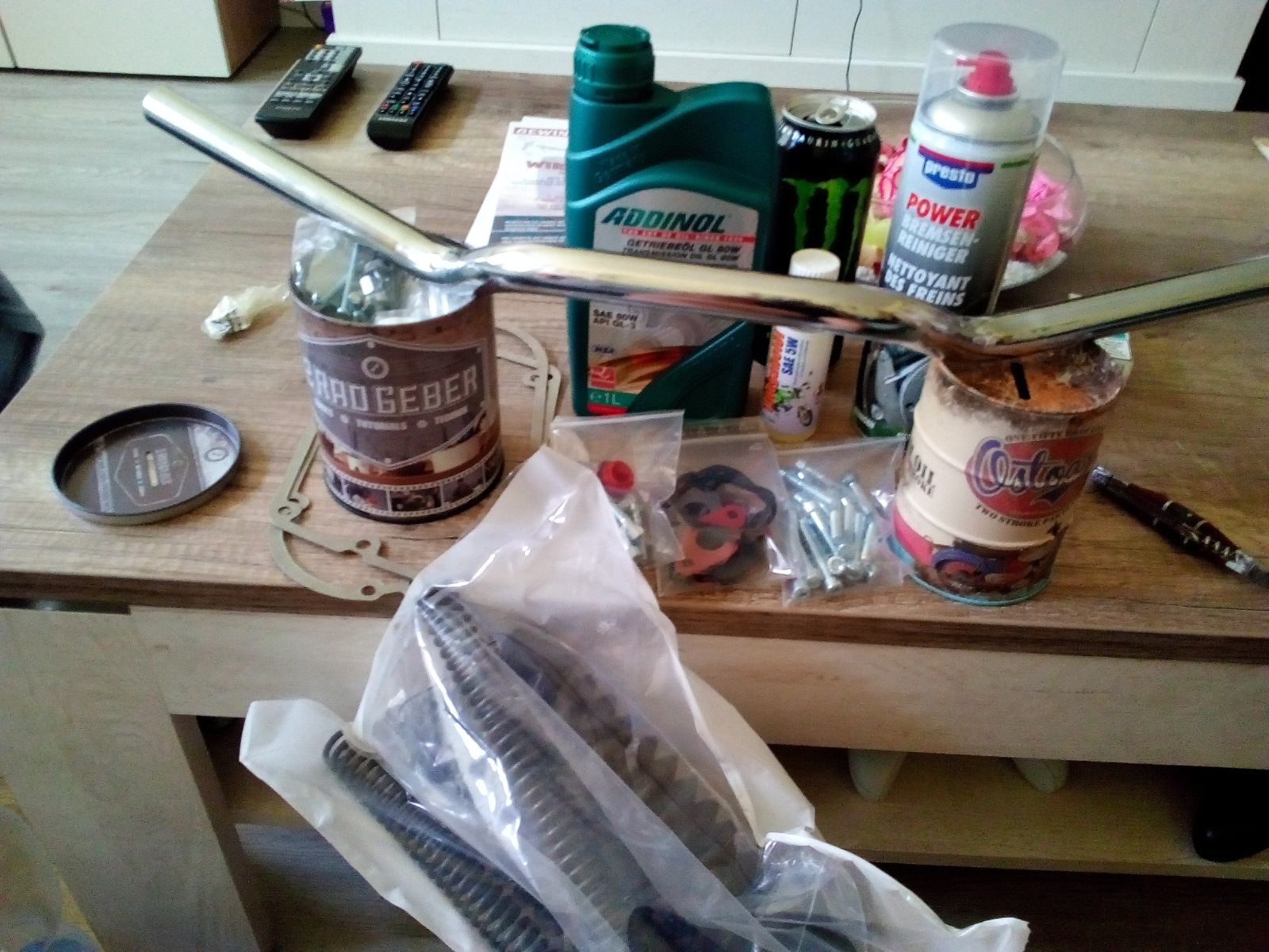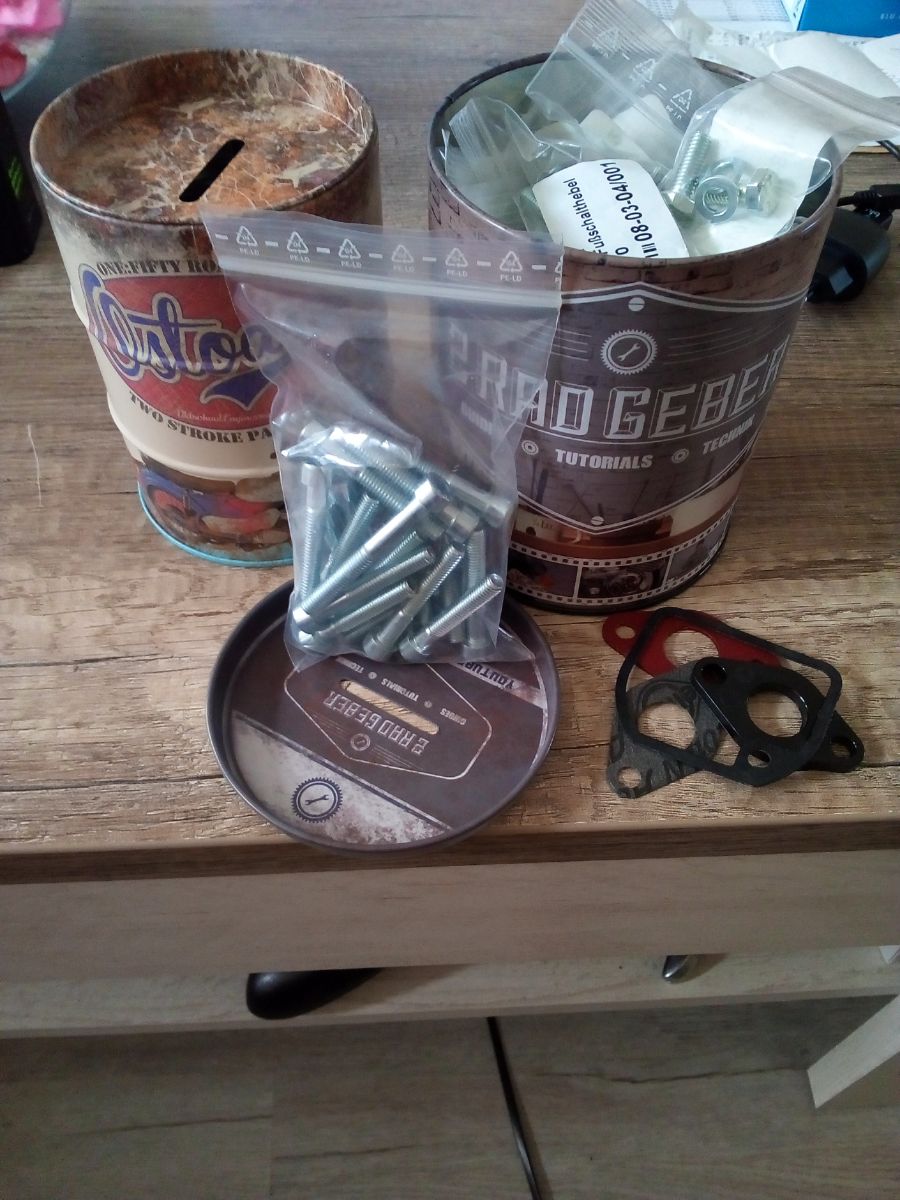 Naja es waren nicht nur die Blechdosen. Nen Innensechskant Schraubensatz gab's noch kostenlos dazu zu und ein Satz Vergaserdichtung.