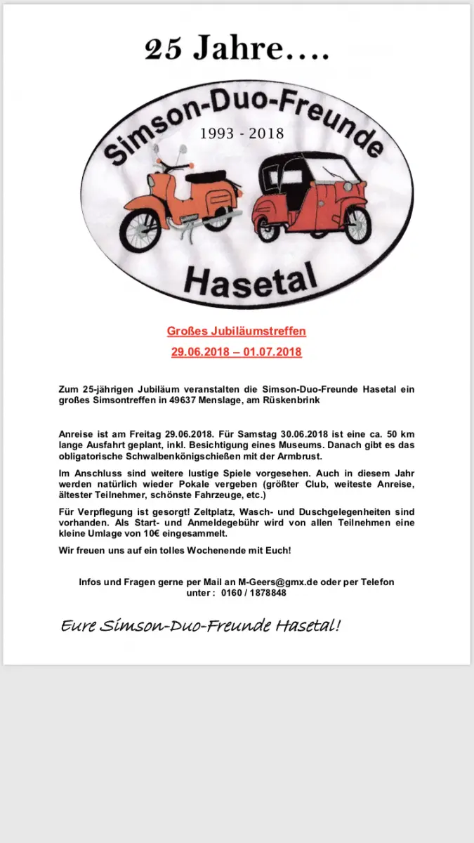 wir, die Simson und Hasetal, haben in diesem Jahr unser 25-jähriges Jubiläum!