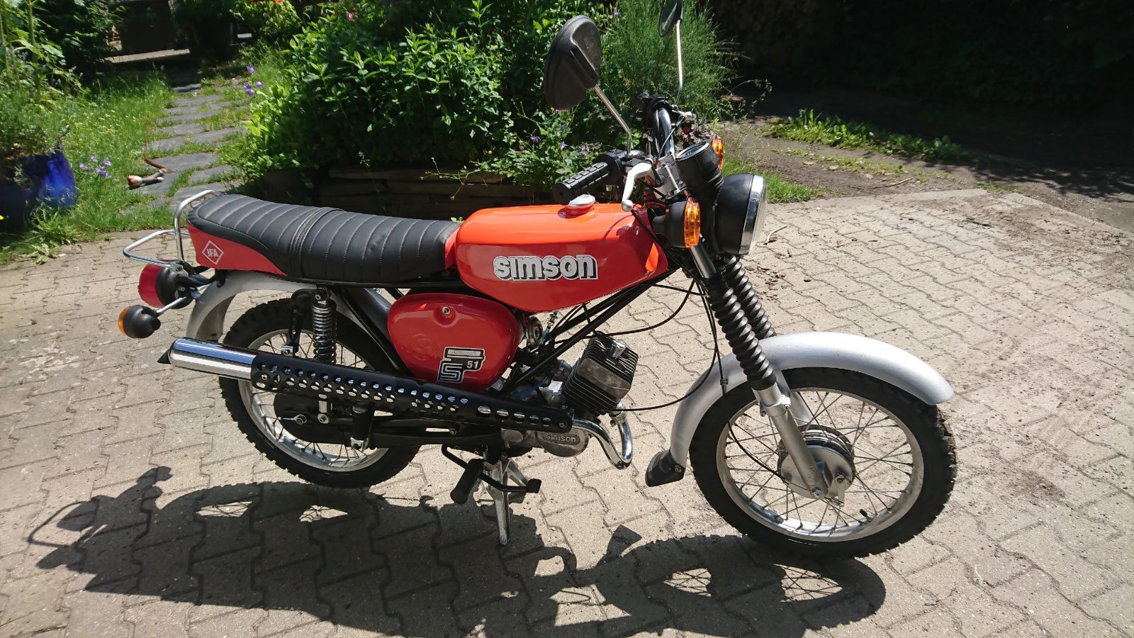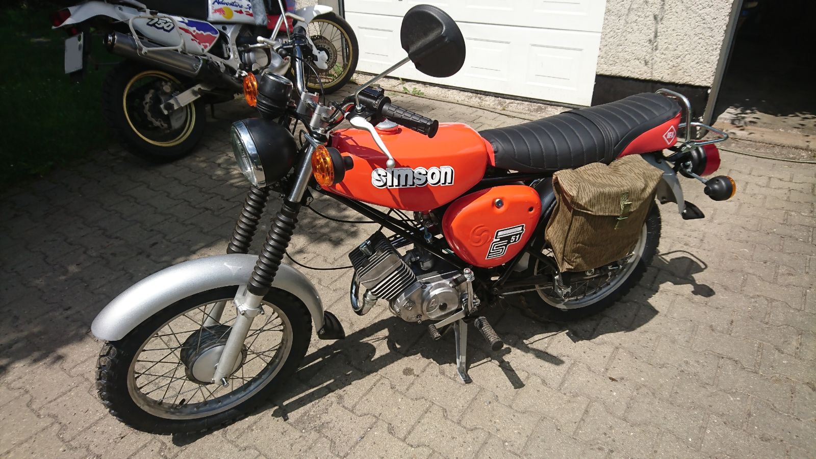 Mittlerweile ist eine VAPE verbaut, neue Kette und Ritzel, und einige andere Teile für etwa 800.-€ Ist zwar nicht original, aber den Klarglasscheinwerfer mit H4 konnte ich mir dann doch nicht verkneifen. Die S51 wurde nicht als Muster an Originalität aufgebaut und ist sicherlich auch nicht perfekt, an einige Sachen muss ich nochmal ran. Die Verlegung der Züge gefällt mir noch nicht, sie könnte besser laufen und dichter sein... Wird mir der Zeit noch genug Arbeit reinpassen...